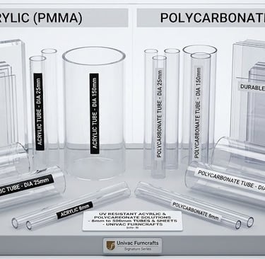 Univac Furncrafts Pvt. Ltd. offers premium-quality polycarbonate tubes in various sizes to meet diverse industrial and commercial needs. Known for their exceptional strength, lightweight nature, and crystal-clear transparency, these tubes provide outstanding impact resistance, thermal stability, and weatherproof performance. Engineered with precision, Univac’s polycarbonate tubes are ideal for applications in construction, lighting, industrial machinery, protective covers, and decorative projects. Combining durability with a sleek appearance, they are trusted for long-lasting performance and versatility.