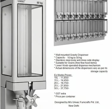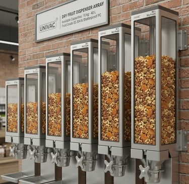 Univac Furncrafts Pvt. Ltd. stands as India’s largest and most trusted manufacturer of gravity bins and gravity dispensers—setting the modern standard for merchandising free-flowing products. With a focus on innovation, durability, and visual appeal, Univac’s dispensers are designed to elevate the retail and hospitality experience.