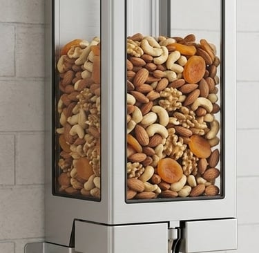 Perfect for dispensing dry fruits, ice cream toppings, and free-flow food grains, the dispensers incorporate a precision rotary valve and modular mounting system, making them suitable for both residential and commercial environments. Every detail—from finish and dimensions to dispensing mechanism—is fully customizable to align with branding and functional requirements.