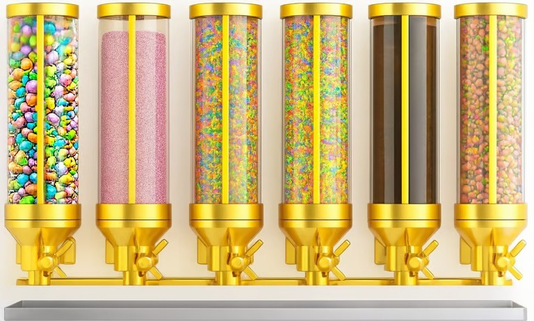 Ideal for cereals, dry fruits, pulses, grains, ice-cream toppings and other bulk food items, Univac’s gravity dispensers offer a seamless blend of functionality and aesthetics. The intuitive gravity-fed mechanism ensures smooth dispensing with minimal waste, while the transparent, modular design enhances product visibility and customer engagement.
