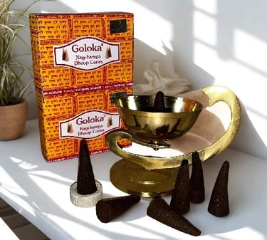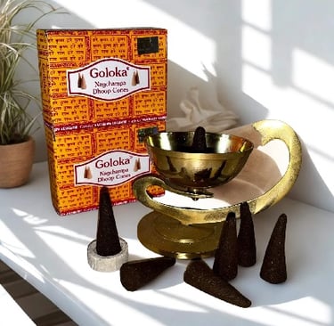Incense Cones: For a more concentrated and intense/ incense-cone-dhoop burst of fragrance, our incense cones are the perfect choice. These compact cones are ideal for quickly filling a space with a delightful aroma. Crafted to burn evenly from tip to base, they are a convenient and elegant option for creating a focused ambiance for your rituals or simply to mask unwanted odors with a beautiful scent.