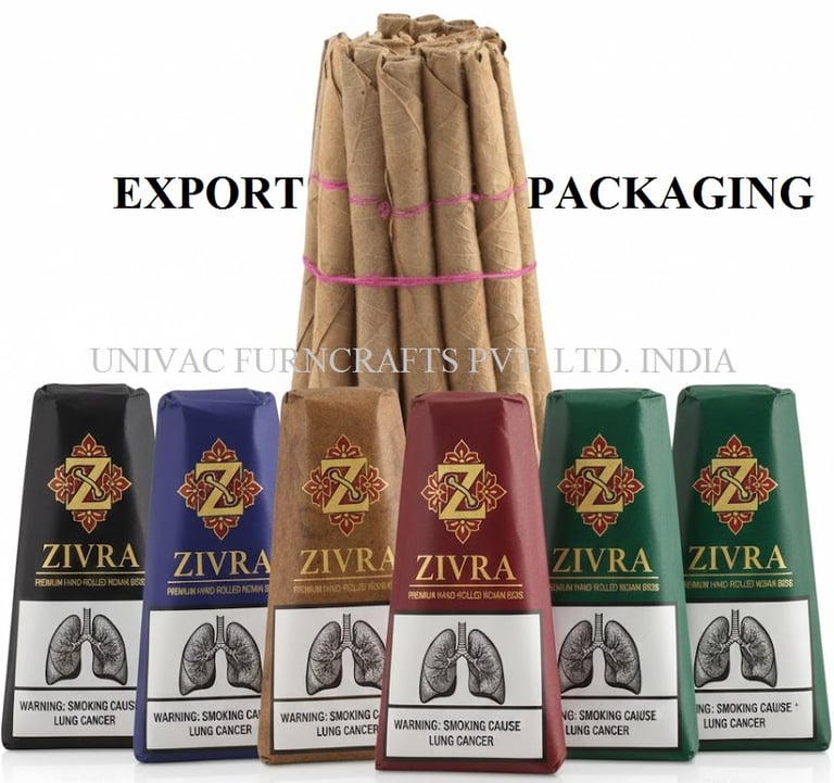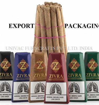 Univac Furncrafts Pvt. Ltd. brings over a decade of specialized expertise in the global export of Indian bidis under the premium brand name "Zivra" Since 2014, we have successfully catered to diverse regulatory landscapes across Africa, Europe, the Arabian Gulf, the United States, and Latin America, customizing our packaging to meet each region’s statutory health warning requirements.