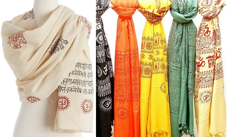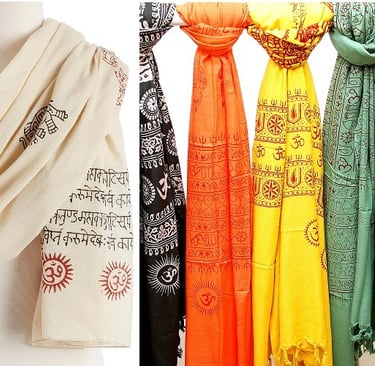 Prayer Shawls: Lightweight cotton or silk shawls printed with sacred Sanskrit mantras or symbols like the "Om."